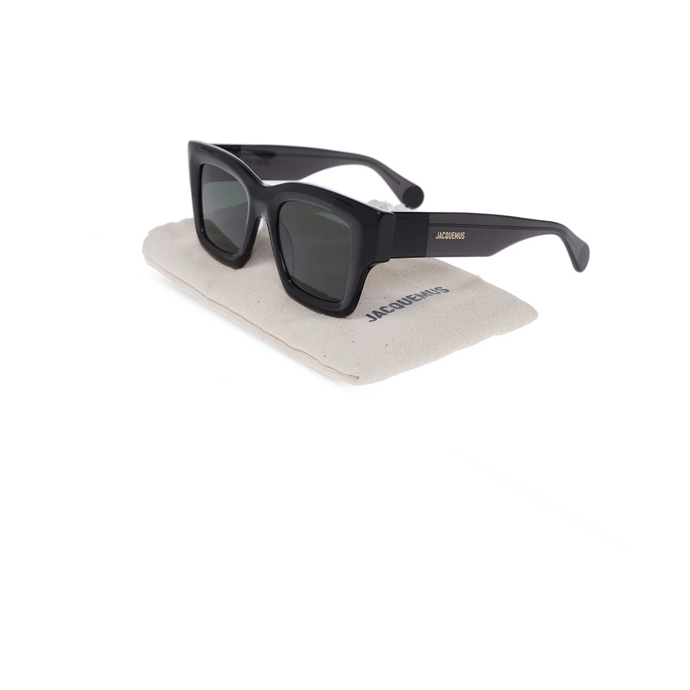 Black ‘Baci’ solbriller fra Jacquemus. Denne modellen har en sølvfarget logo-detalj til siden og sertifiserte grønne linser med 100% UVA/UVB-beskyttelse. Saken inkludert.